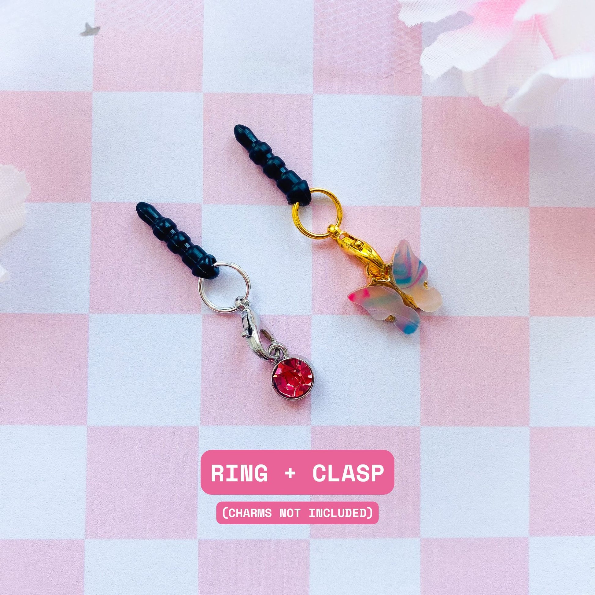 Made for those who are looking to add their own charms to devices with headphone jack ports like Nintendo Switch, E-readers, PS Controllers, and more. Simply choose between options that fit your needs: gold or silver, and ring or clasp.