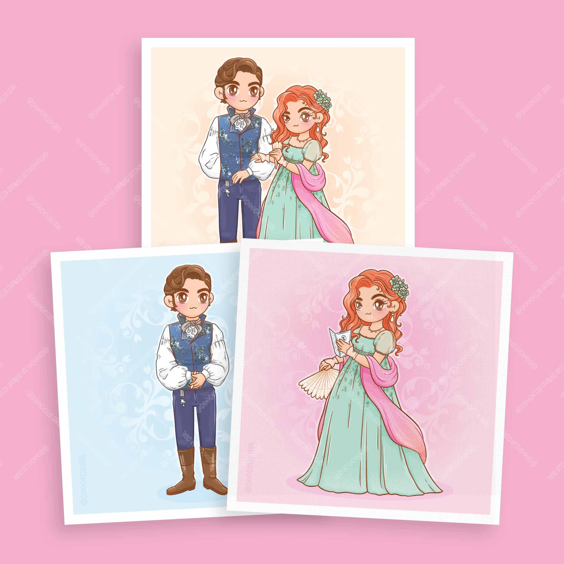 Cute Penelope and Colin illustrated art prints inspired by the show Bridgerton! These are the perfect gift for readers or as a little gift for yourself! Available in 4 sizes, for custom sizes please message me.