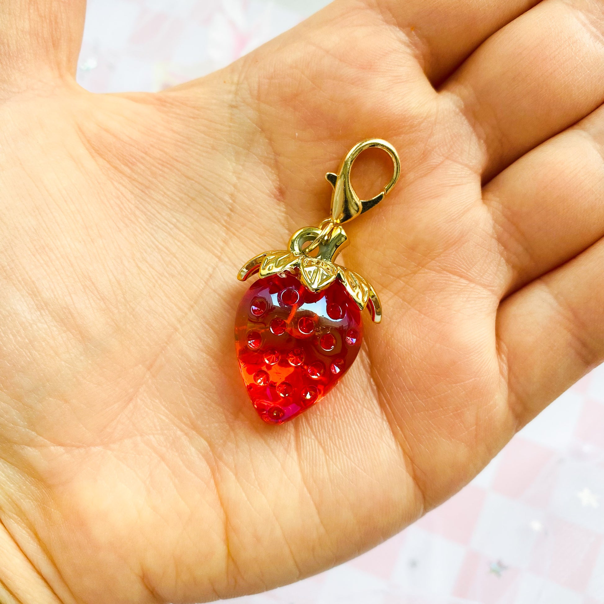 Add a touch of summer cuteness to your phone with this strawberry charm with gold phone loop!