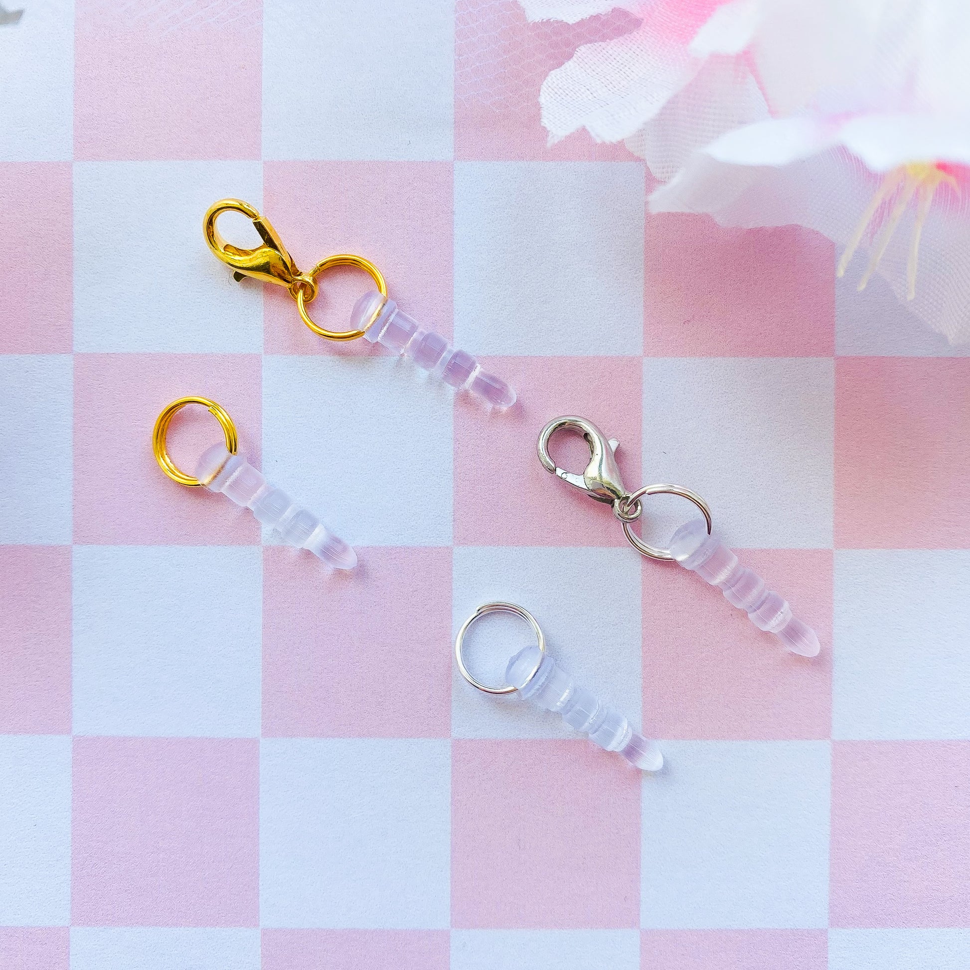Made for those who are looking to add their own charms to devices with headphone jack ports like Nintendo Switch, E-readers, PS Controllers, and more. Simply choose between options that fit your needs: gold or silver and ring or clasp.