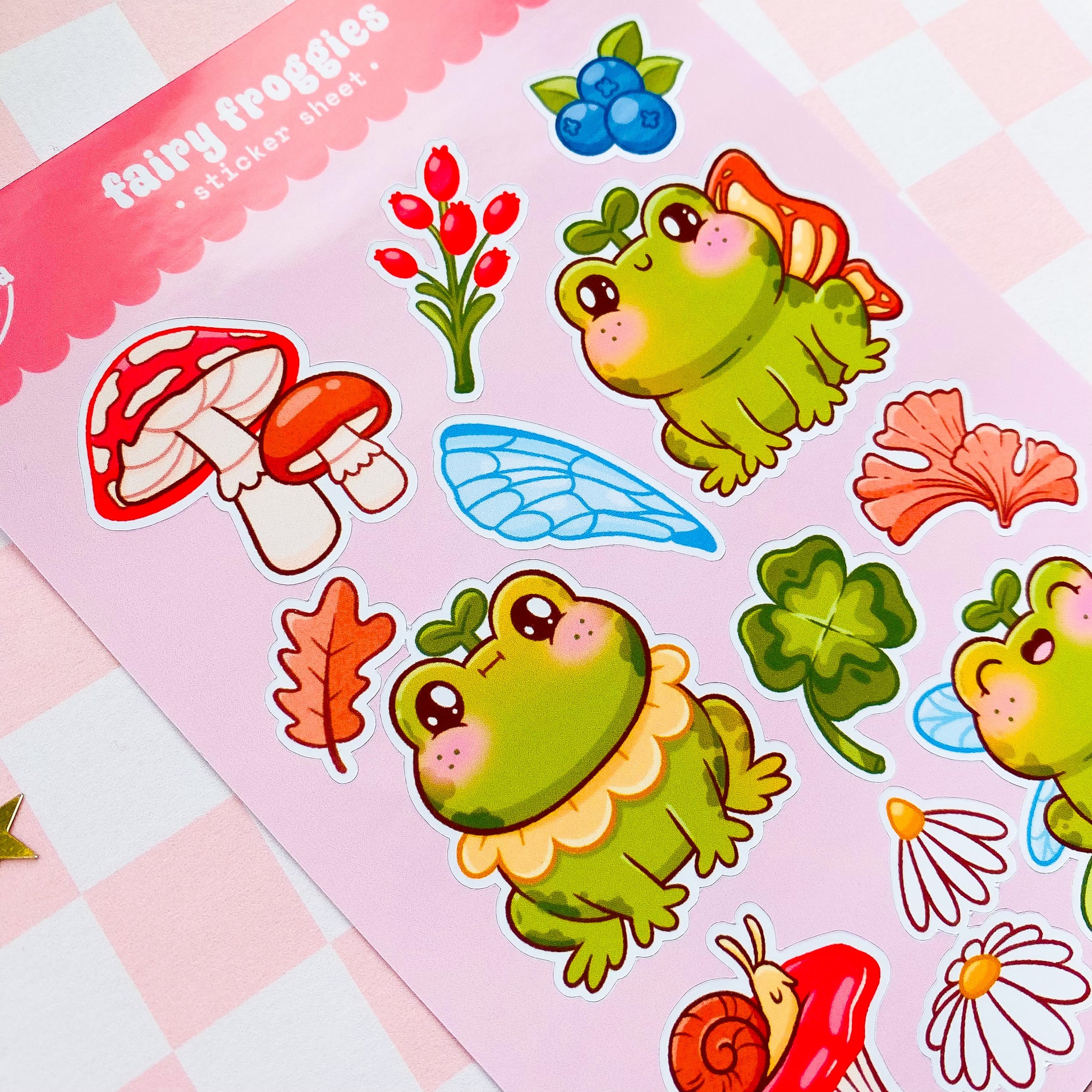 This cute sticker sheet features a delightful collection of various adorable and charming fairy frog designs, perfect for adding a touch of cuteness to your planners, journals, scrapbooks, and crafts. With an array of whimsical characters and illustrations, this sticker sheet offers endless possibilities for creative expression and personalization.
