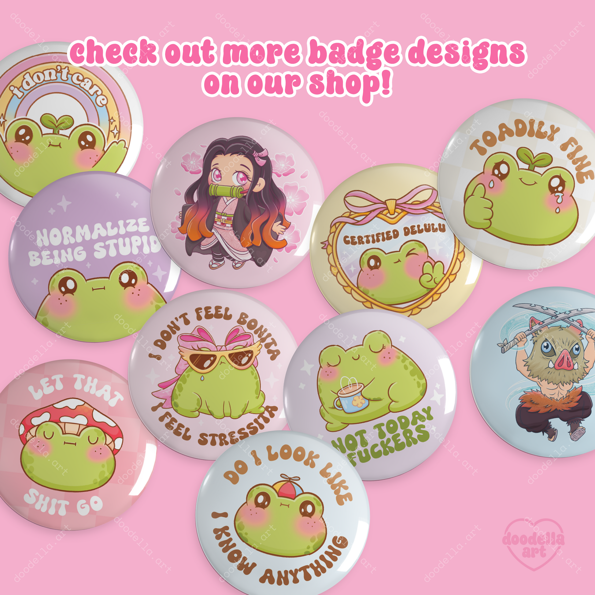Show off your sassy side with these frog button pin—perfect for adding a humorous and relatable touch to your backpack, jacket, beanie, tote bag, or hat while embracing that overstimulated feeling in style!