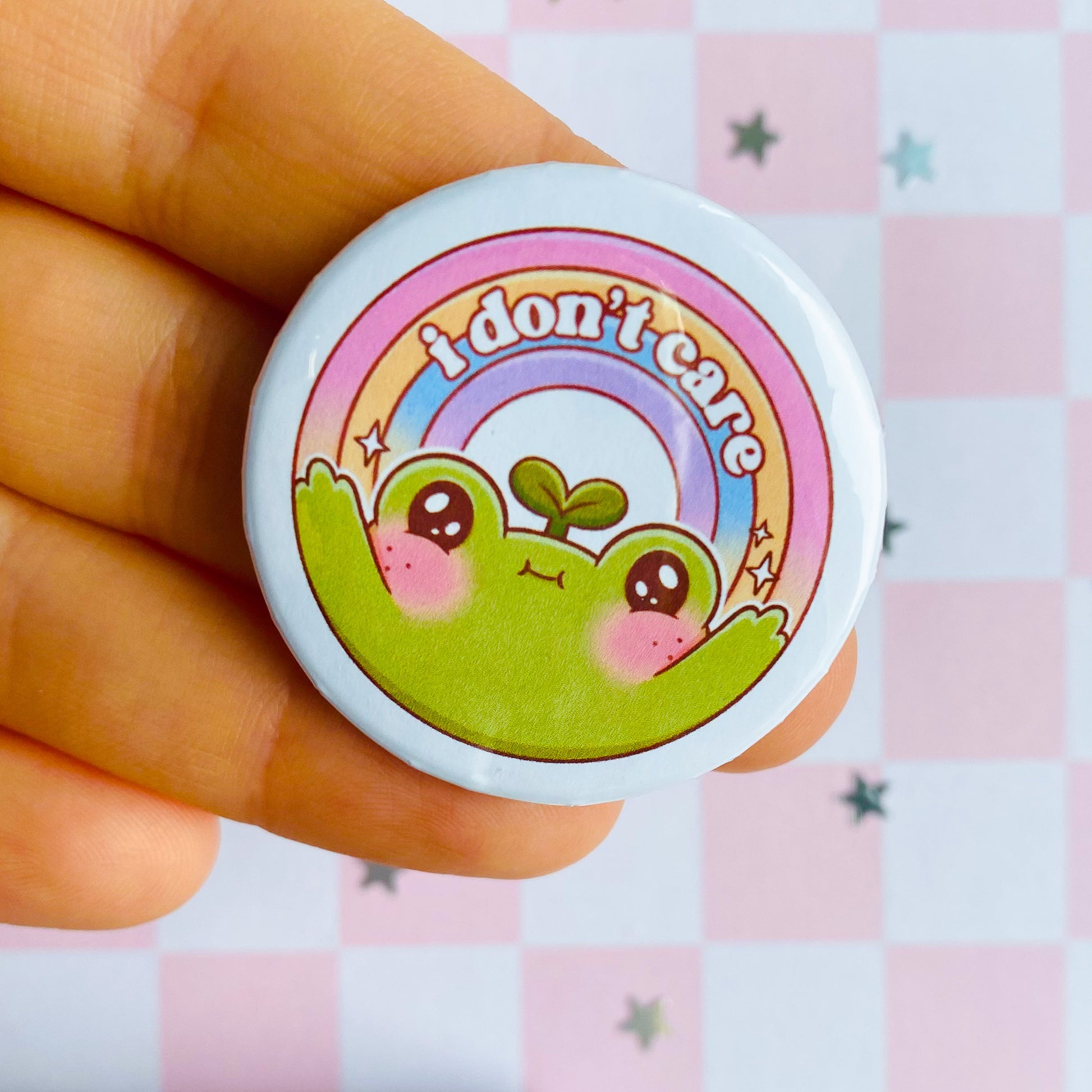 I Don't Care Frog Button Pin