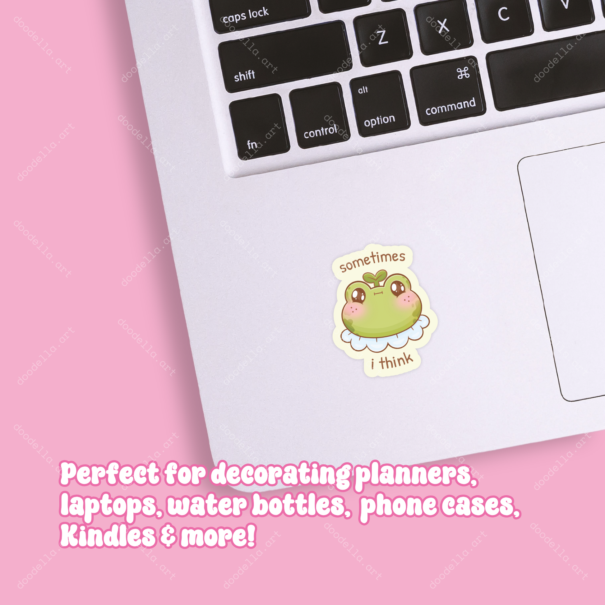 Do you ever think? Maybe you relate to this sticker. The die-cut stickers can be used to decorate various items such as laptops, water bottles, notebooks, and phone cases, adding a touch of charm and personalization to everyday objects.