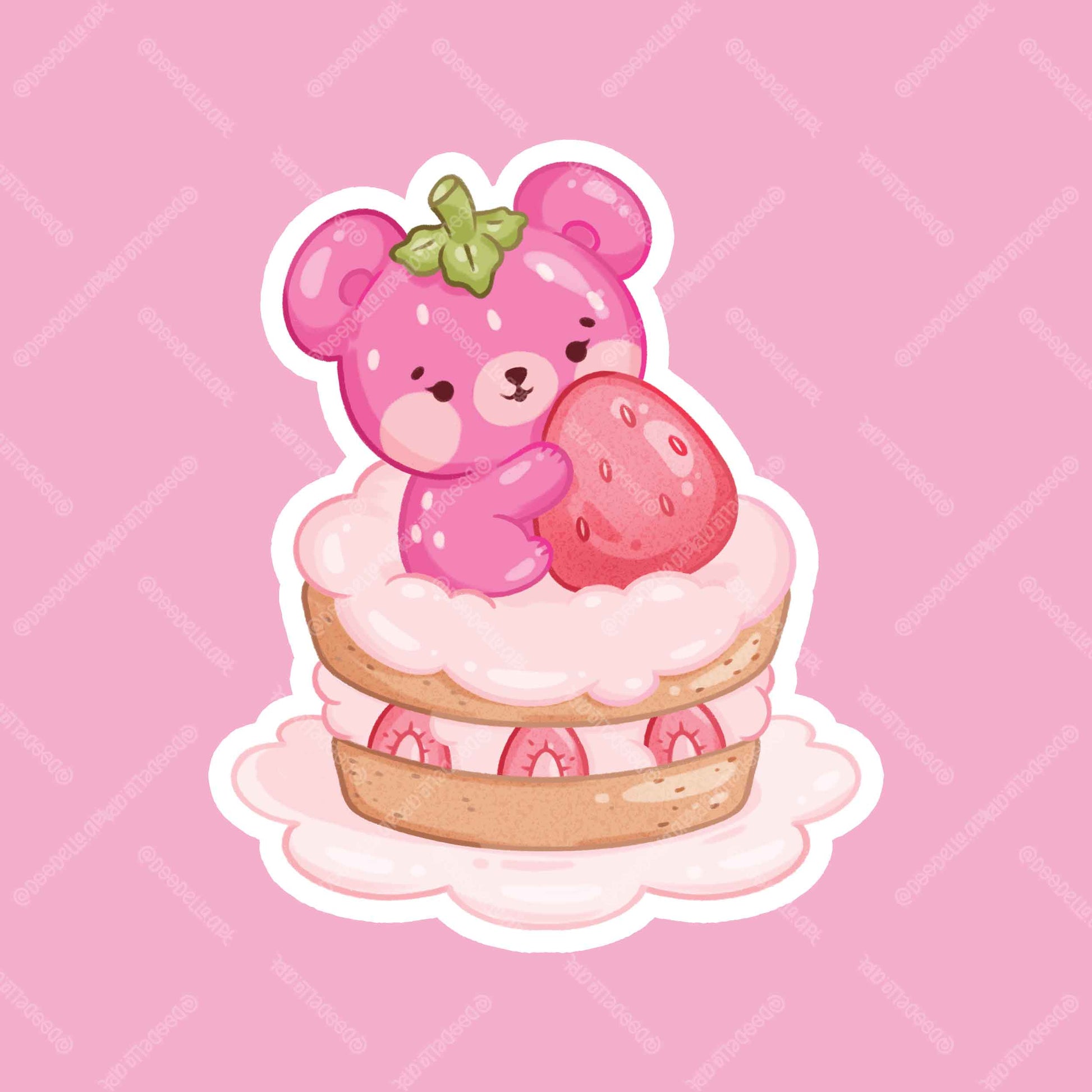 Do you love strawberries and cake? This whimsical strawberry bear sitting on Victorian strawberry sponge cake is a perfect sticker design for you. These die-cut sticker can be used to decorate various items such as laptops, water bottles, notebooks, and phone cases, adding a touch of charm and personalization to everyday objects. Made in collaboration with StickerIt.